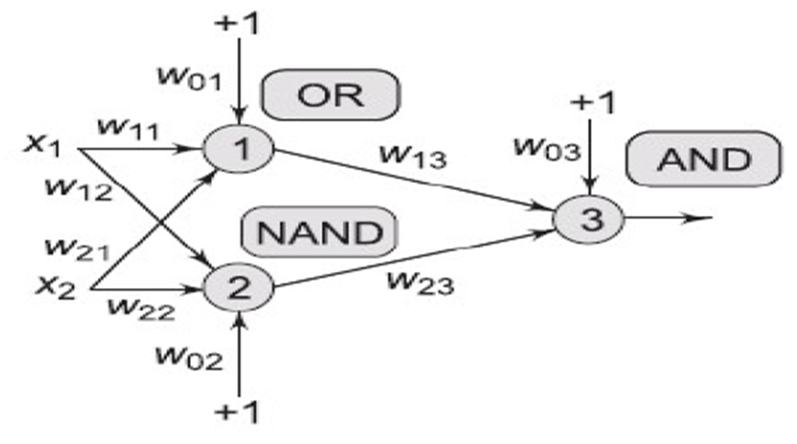 (X1 AND X2)' 은 NAND 함수가 되기 때문에, OR 함수와 NAND 함수 그리고 AND 함수를 이용하여 표현할 수 있게 됩니다.