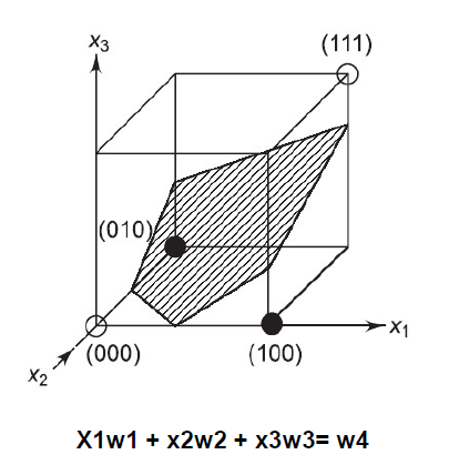 중간 퍼셉트로에 x1과 x2의 AND 조건으로 만들어주고, 넣어줌으로 3차원 좌표를 만들 수 있습니다.