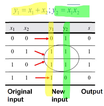 두개의 퍼셉트론을 적용하고 게이트 문제를 풀게되면 다음과 같이 풀이가 가능합니다.